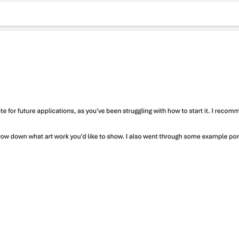 This brief encouraged me to reflect on my past and future - my journey in this course - positioning myself as an artist - thinking towards potential career paths and studios - networking with BOM and other creatives - developing more professionalism and confidence. I feel like there are things I could have done better in terms of the interview and cv, but I appreciate the work I have done to promote myself ( portfolio especially ) and everything I've learnt in the process.